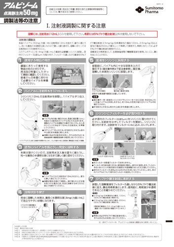 アムビゾーム点滴静注用50mg 調製法等の注意